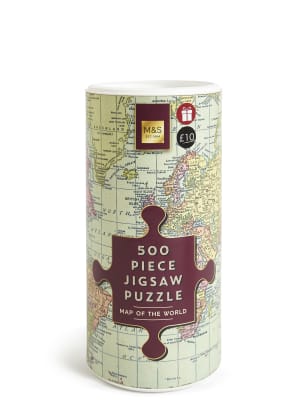 World Map Jigsaw Puzzle 500 Pieces - This great 500 piece jigsaw features a detailed image of the world map and a handy reference image on both the front and back covers that make is easy to complete with friends and family.this beautiful, detailed puzzle is perfect for anyone who likes to test their puzzle skills and expand their mind.